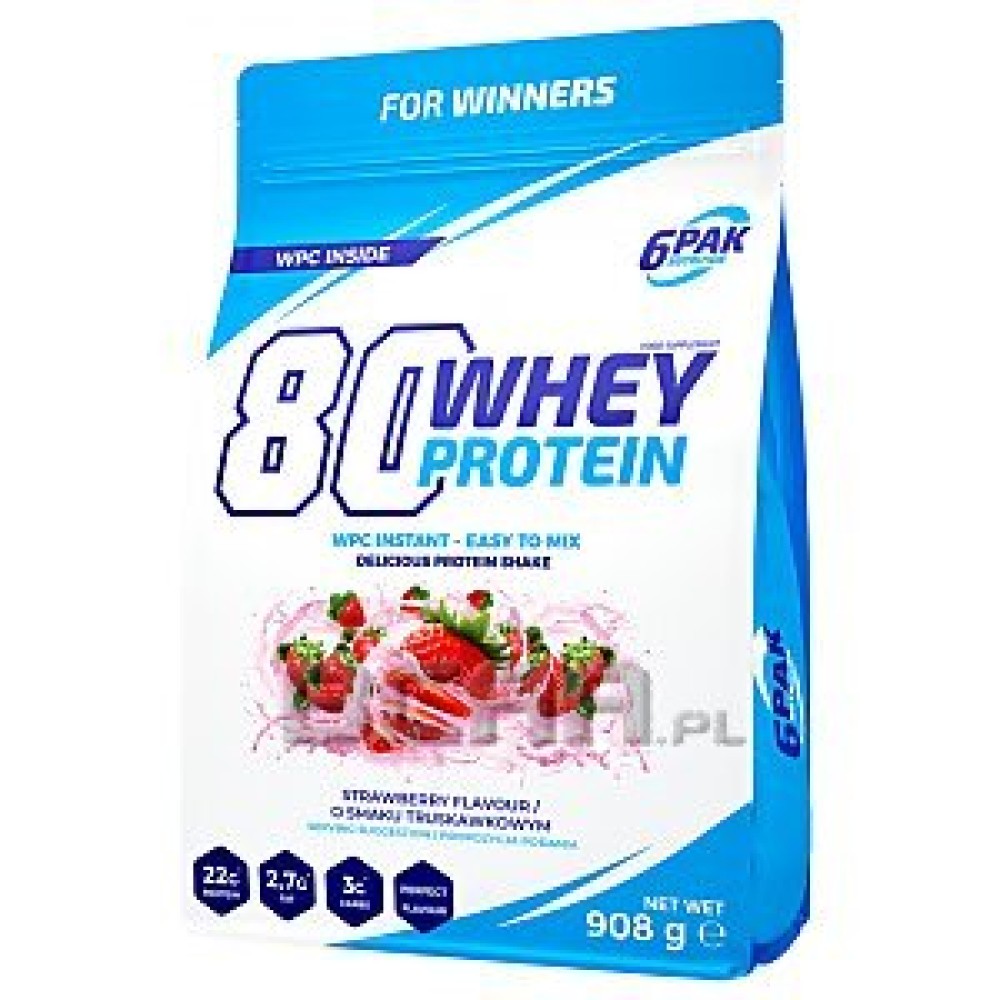 6PAK - 80 Whey Protein - 908 g to bardzo smaczne białko o doskonałej rozpuszczalności.
