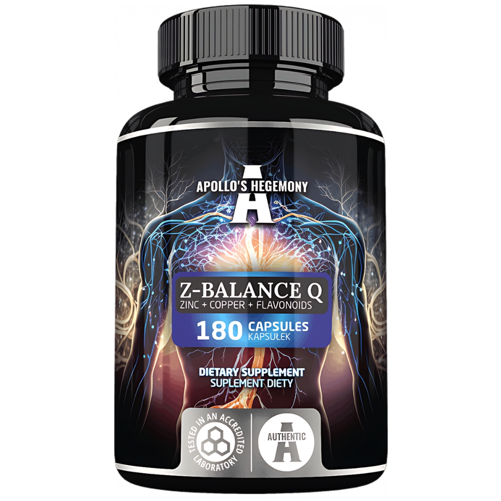 Apollo's Hegemony - Z-Balance Q to zaawansowany suplement diety łączący skuteczne formy cynku i miedzi z dodatkiem zielonej herbaty oraz kwercetyny. Formuła oparta na najnowszych badaniach naukowych zapewnia optymalną absorpcję składników mineralnych, wspierając zdrowie na wielu poziomach.