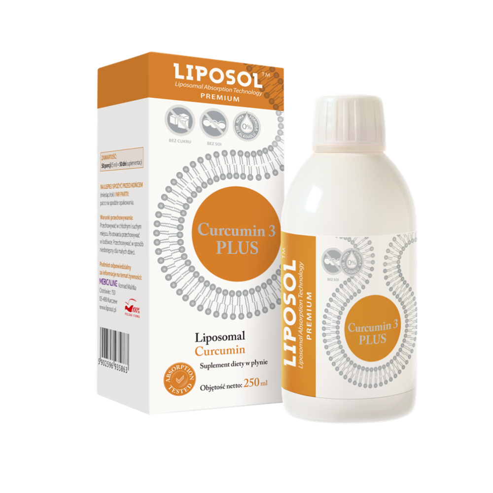 Liposol - Liposomalna kurkumina 95% Curcumin 3 PLUS - 250 ml to suplement diety zawierający liposomalną kurkuminę.