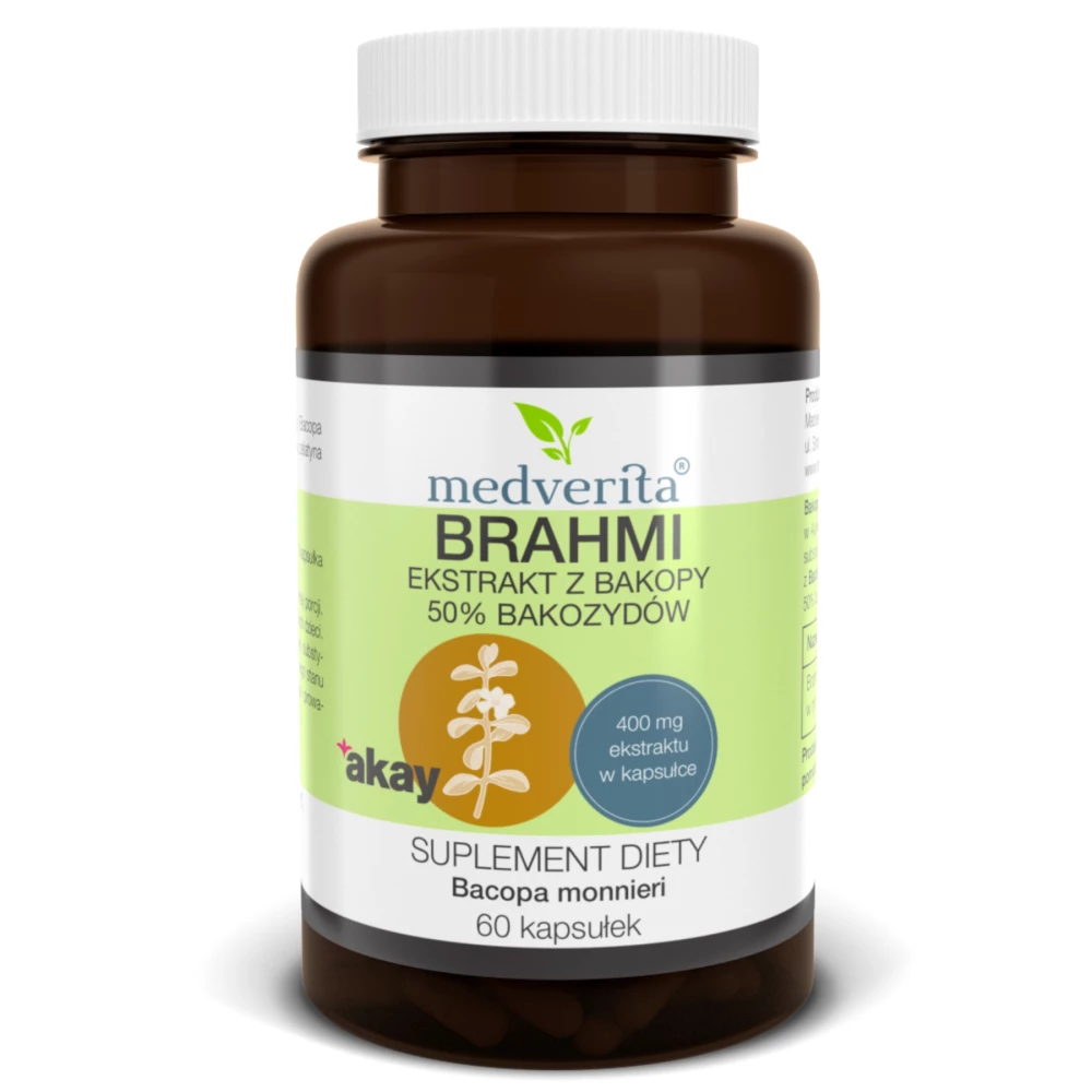 Medverita - Brahmi 50% bakozydów to suplement diety zawierający standaryzowany ekstrakt z bakopy drobnolistnej.