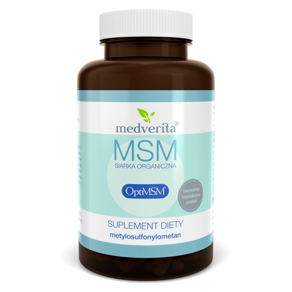 Medverita - MSM siarka organiczna OptiMSM® 500 mg - 120 kapsułek to suplement diety zawierający siarkę OptiMSM®, która jest najwyższej jakości formą siarki organicznej.