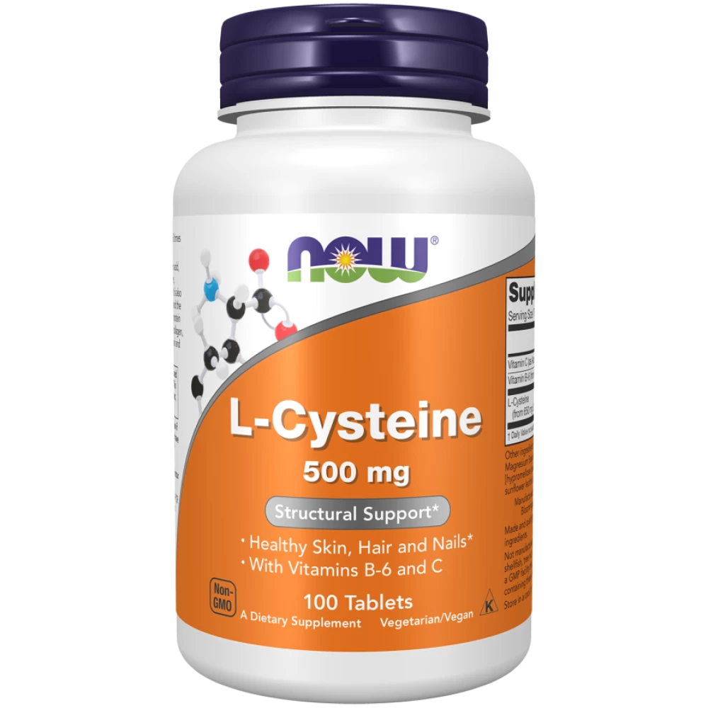 NOW - L-Cysteine 500 mg - 100 tabletek jest kompleksowym suplementem diety zawierającym endogenny aminokwas - l-cysteinę, witaminę C oraz witaminę B6. Składniki zawarte w tym produkcie mają właściwości antyoksydacyjne - pomagają w ochronie komórek przed stresem oksydacyjnym, wpierają prawidłową produkcję kolagenu, wspierają prawidłową pracę układu odpornościowego i pomagają zachować zdrowe włosy, skórę i paznokcie.