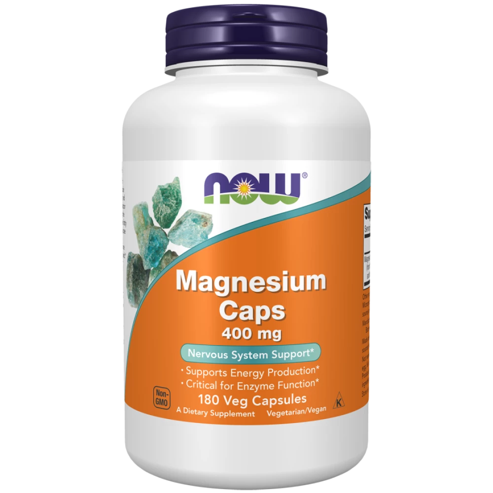 NOW - Magnesium Caps 400 mg - 180 kapsułek to suplement łączący w sobie 3 formy magnezu, a każda kapsułka to aż 400 mg jonów magnezu.