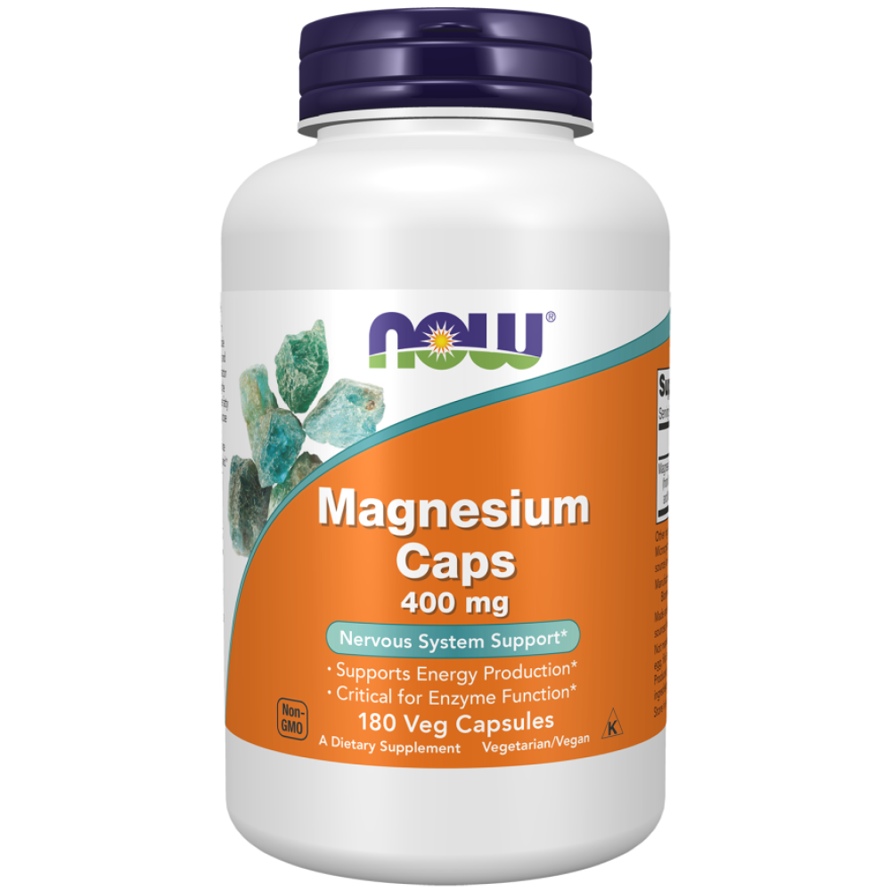 NOW - Magnesium Caps 400 mg - 180 kapsułek to suplement łączący w sobie 3 formy magnezu, a każda kapsułka to aż 400 mg jonów magnezu.