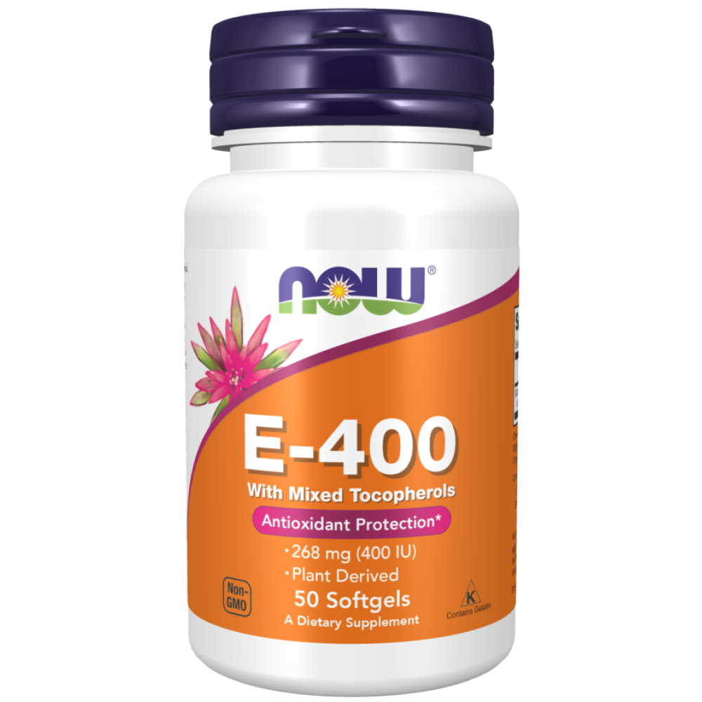 NOW - Natural Vitamin E-400 - 50 kapsułek to źródło naturalnej witaminy E, która jest silnym antyoksydantem - pomaga w ochronie komórek przed stresem oksydacyjnym.