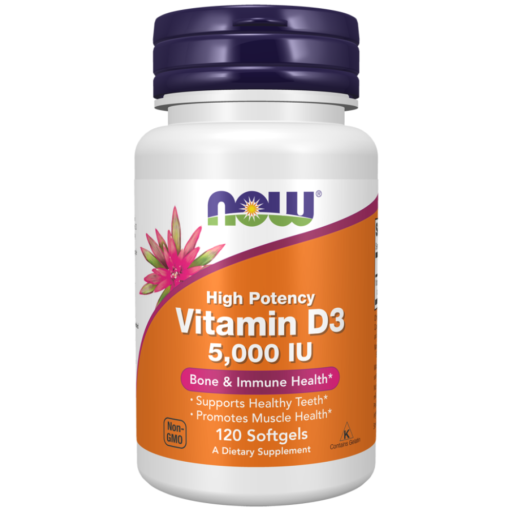 NOW - Vitamin D-3 5,000 IU - 120/240 kapsułek - Wysoka dawka witaminy D dla odporności i kości