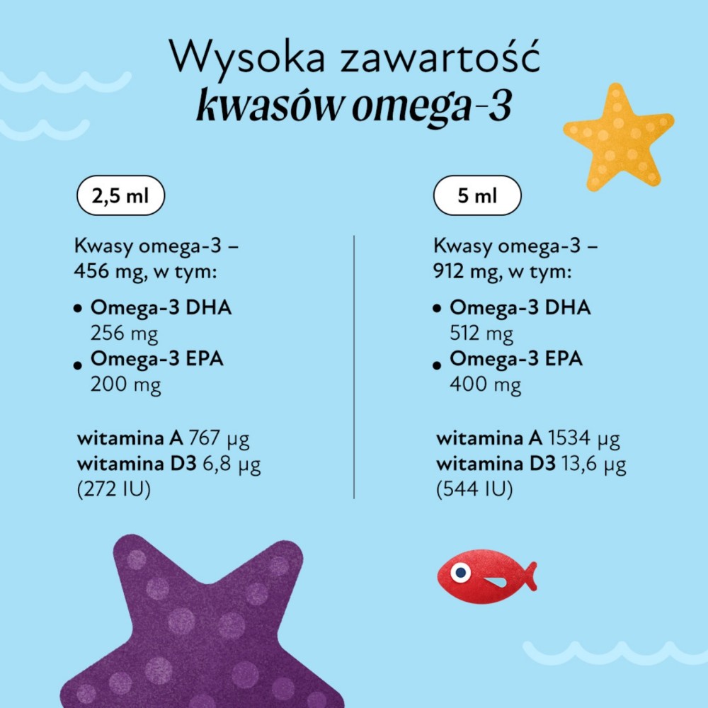 To dobry wybór dla dzieci powyżej 1. roku życia oraz dorosłych, którzy chcą uzupełnić dietę w kwasy omega-3 oraz witaminy A i D w prostej, naturalnej formie.