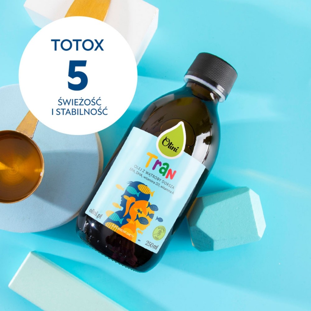 Olini Tran dla dzieci to naturalny olej z wątroby dorsza (Gadus morhua), który możesz łatwo włączyć do codziennej diety swojego maluszka. To prosty sposób, by uzupełnić ją w kwasy tłuszczowe omega-3 oraz witaminy A i D – bez zbędnych dodatków.