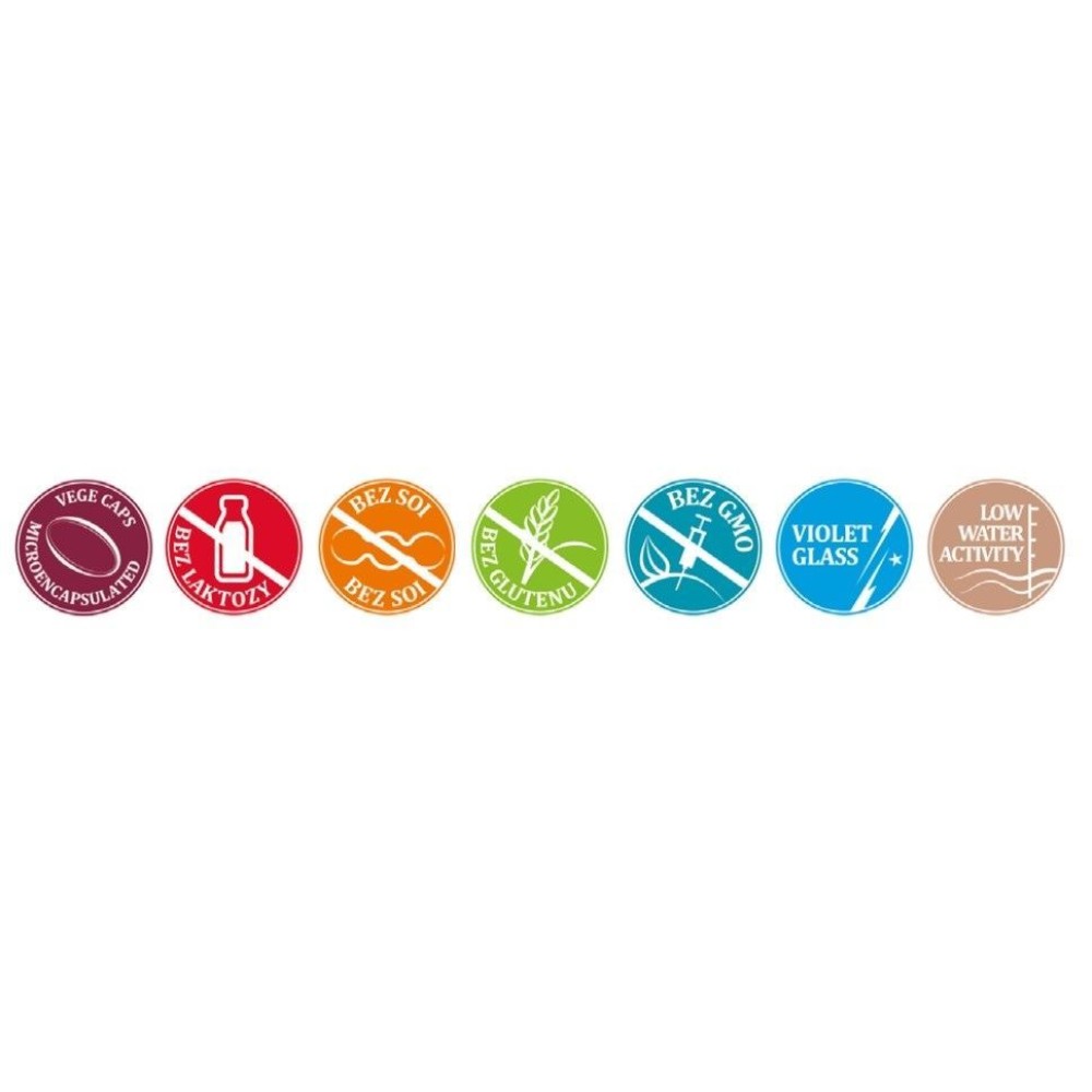 ✅ technologia mikrokapsułkowania zapewnia bezpieczne przejście bakterii przez początkowy etap układu pokarmowego