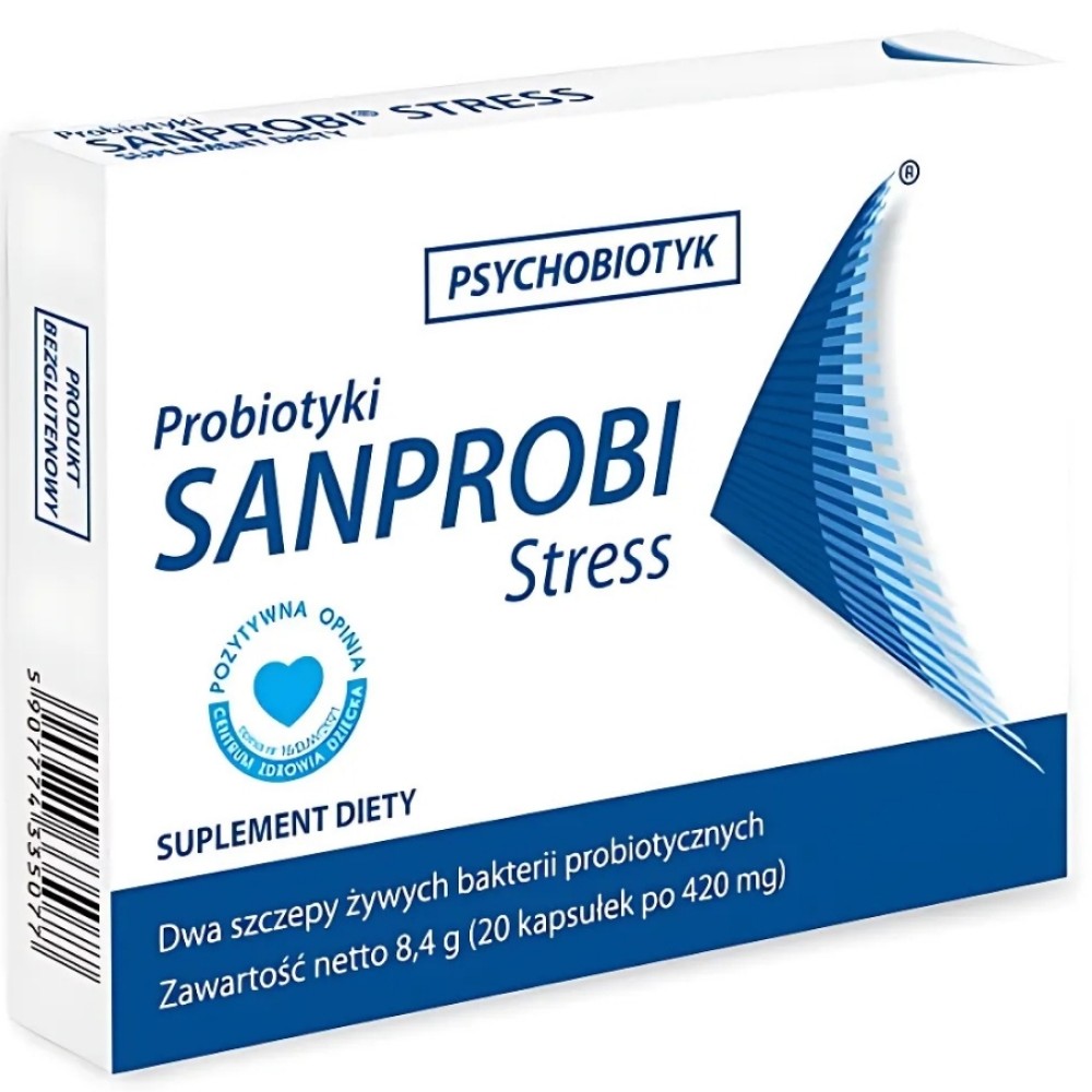 SanProbi - Stress - 20 kapsułek to suplement probiotyczny zawierający kombinację 2 wyselekcjonowanych szczepów bakterii probiotycznych.