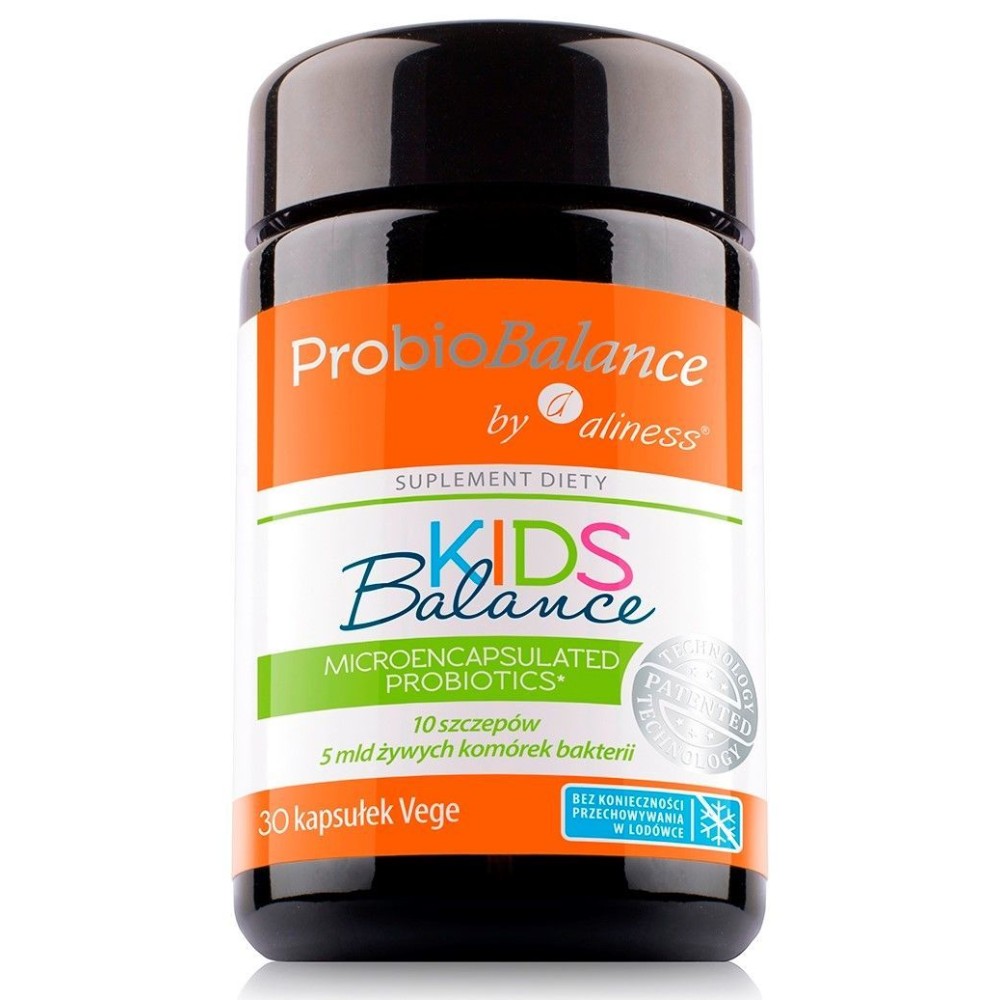 ProbioBalance - Kids Balance - 30 kapsułek to probiotyk dedykowany dzieciom już od 1 roku życia, zawierający 10 wyselekcjonowanych szczepów bakterii probiotycznych.