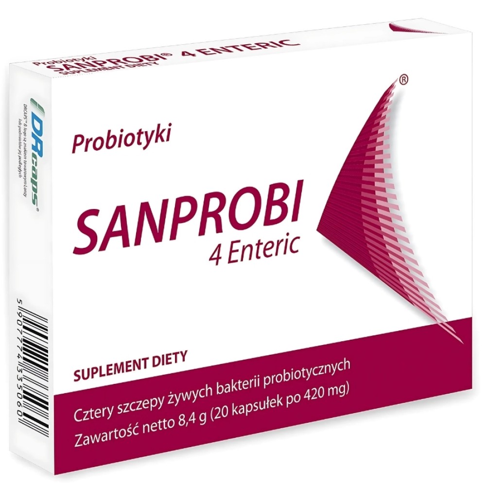 SanProbi - 4 Enteric - 20 kapsułek to suplement diety, który zawiera unikalną kompozycję czterech szczepów bakterii probiotycznych.