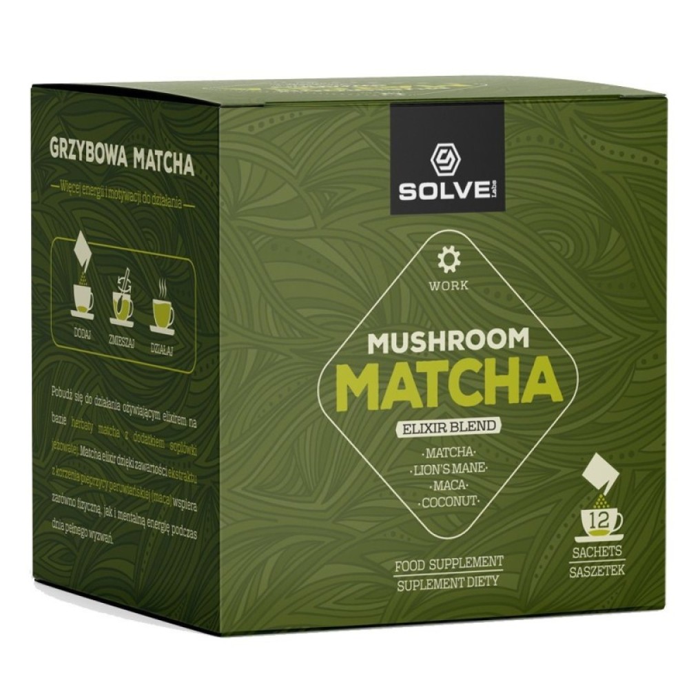 Solve Labs - Mushroom Matcha Elixir - 12 saszetek: Energia, skupienie i kreatywność w każdej filiżance!