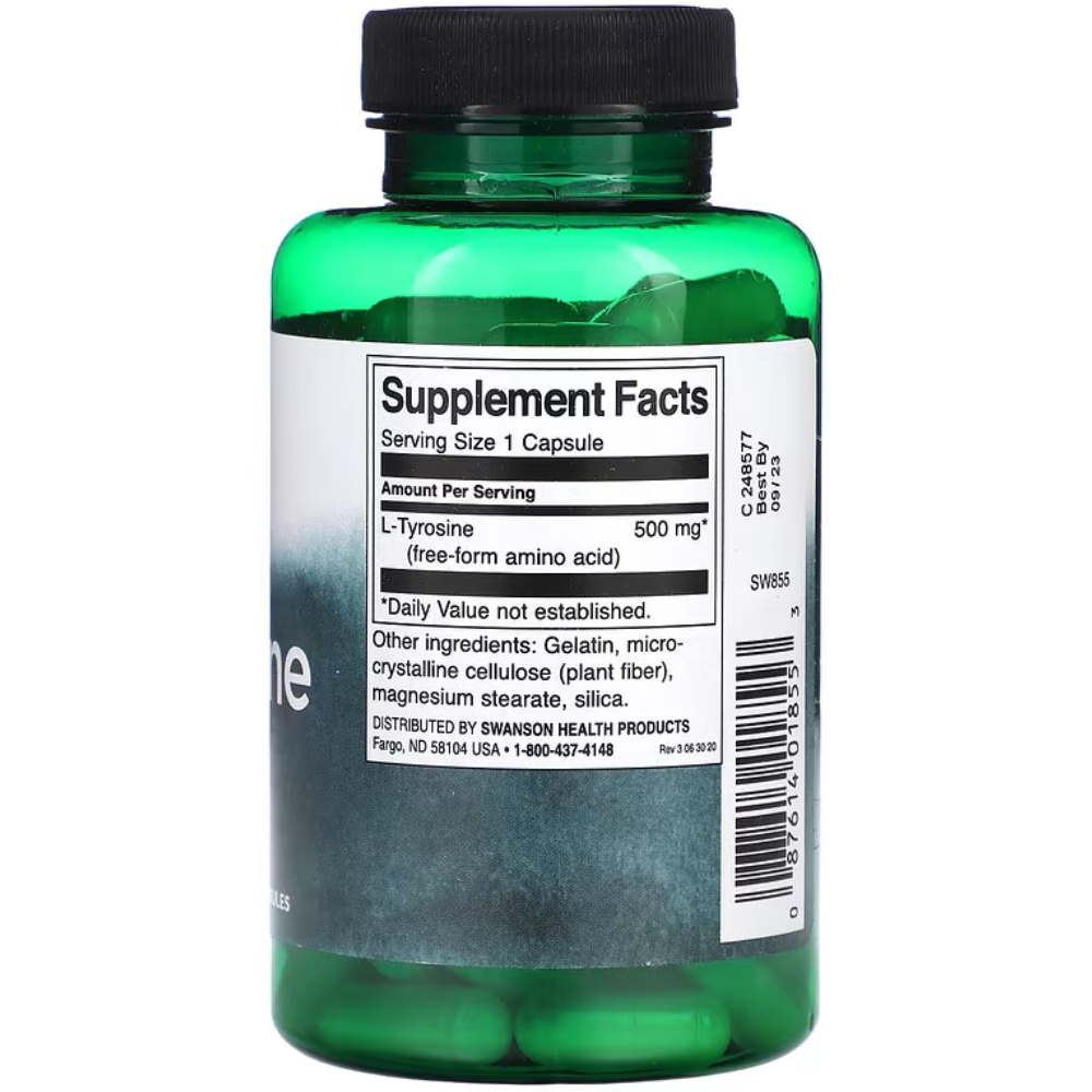 Swanson L-Tyrosine to suplement diety zawierający 500 mg L-tyrozyny w każdej kapsułce. L-Tyrozyna jest aminokwasem, który odgrywa kluczową rolę w produkcji neuroprzekaźników, wspierając zdrowie układu nerwowego i funkcje poznawcze.Korzyści stosowania Swanson L-Tyrosine: