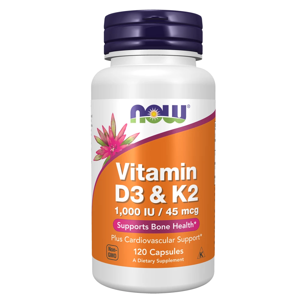 NOW - Vitamin D-3 & K-2 1000 IU / 45 mcg - 120 kapsułek to przemyślane połączenie 2 witamin rozpuszczalnych w tłuszczach - witaminy D i witaminy K.